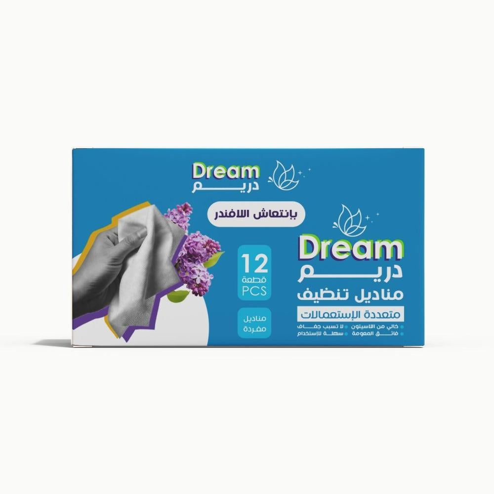 دريم مناديل تنظيف متعددة الإستعمالات برائحة اللافندر 12 حبة