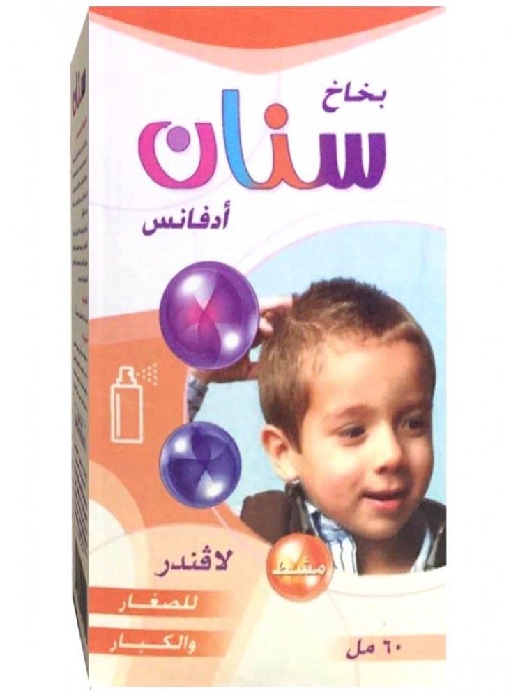 سنان بخاخ للوقاية من حشرات الشعرالحجم: 60 مل بخاخ سنان مستحضر خاص لمعالجة الإصابة بالقمل وبيوضه مناسب استخدامه للصغار و الكبارسنان هو الحل الأمثل للمساعدة على التخلص من القمل هذا البخاخ غني بالزيوت المغذية والضرورية للتخلص من القمل والصيبانكيفية إستخدام االبخاخ يتم توزيع المستحضر على الشعر ا لمدة 5 دقائق ثم يشطف جيدا بالماءيقضي على القمل والبيضيسمح لك لعلاج الراس في مدة لا تزيد عن 10 دقائق يفضل استخدامه اكثر من مرةسهل الاستخدام