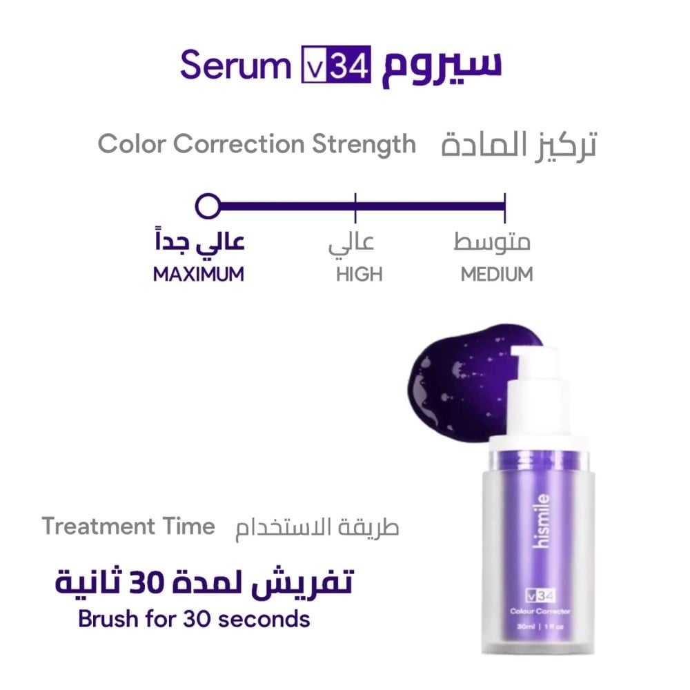 يعمل V34 على تفتيح الأسنان من خلال استخدام تقنية تصحيح الألوان. من خلال موازنة الألوان المختلفة في أسنانك، يعمل V34 على إخفاء البقع وتحسين السطوع.