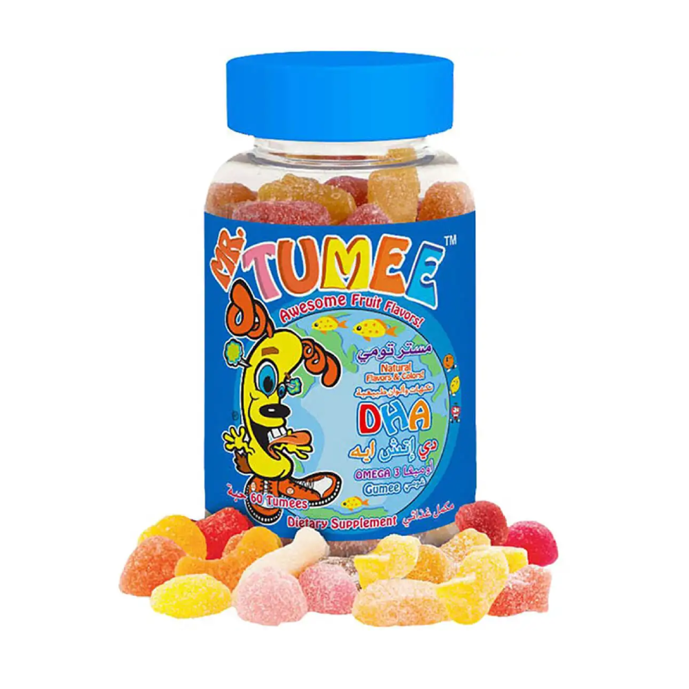 مستر تومي أقراص مضغ اوميغا 3 هي مكمل غذائي للأطفال من عمر سنتين فما فوق. تحتوي كل حبة على 180 مجم من حمض الدوكوساهيكسانويك (DHA) و 90 مجم من حمض الإيكوسابنتاينويك (EPA) بالإضافة إلى فيتامين د. تأتي الأقراص بنكهات طبيعية مثل البرتقال والفراولة والليمون وهي خالية من الجيلاتين والغلوتين.